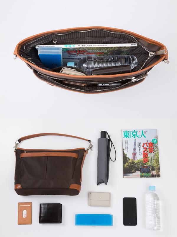 メイン素材: ナイロン(リモンタ社製) 附属:牛革 本体に高密度で光沢感のある上質な素材として有名なリモンタ社製ナイロン、附属には手塗ワックス後にアイロン加工を施した牛ヌメ革を使用した、B5サイズが入りポケットを多数装備した収納力のある、ワンショルダー・斜め掛けと2WAYで使用できるショルダーバッグです サイズ 横幅30cmX高さ21cmX厚幅(マチ)9cm 日本製 重量:600g