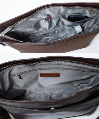 内装背面には口幅20cm、深さ14cmのファスナーポケット×1。