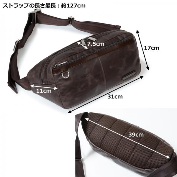 Amazonでのご購入はコチラ! 楽天市場でのご購入はコチラ! クラウドファンディングサイト【BOOSTER】にて20名様、475,700円のご支援を頂き製品化しました!詳しくはこちらをご覧下さい! 東京の鞄メーカー発ブランド「INNFITH(インフィス)」が提案する本革ボディバッグ。 姫路で鞣(なめ)されたレザーは上質な質感。 丈夫で使う度手に馴染み、3年後、5年後と長くお楽しみ頂けます。 たっぷり収納でカジュアルからビジネスまでOK!自転車通勤などにもオススメ。 風格を高めて大人の移動を演出します。 本体のレザーは北米原皮、姫路のタンナーで鞣された「バレッサ供廚鬟船腑ぅ垢靴泙靴拭 この革は表面を軽く擦り、150度という高温のアイロンでWAXを浸透させた事によりきめ細やかな肌面が特徴の革です。鞣しの段階でタンニンを使用する事で軽量化も実現、100度の低温アイロンで最終仕上げを行う事で自然のつやを出しています。 市販のワックス、クリームなどを使用する事で艶や色に深みが増し、革に重厚感が増して行きます。 軽いかすりキズ程度であれば、オイルを塗り込む事で目立たなくなるので是非キズを気にせず使って下さい。 お礼のお手紙に、日々のお手入れ方法を記載してお送り致します。 本体に合わせる付属の革も国内鞣しの牛ヌメ革を使用しています。 ワックスを丁寧に塗り込んで仕上げたヌメ革はツヤがあり手触りも良く、こちらも経年変化をお楽しみ頂けます。 本体素材:本牛革 裏地:ポリエステル(ブラック→ネイビー、ブラウン/キャメル→ブラウン) 付属革:牛本革(ブラック→ブラック、ネイビー/キャメル→ブラウン) 金属:ニッケル古美色 サイズ:横幅(前)31cm/横幅(後)39cm×高さ17cm×マチ幅(上下)7.5cm/マチ幅(左右)11cm ストラップ長さ最長:約127cm 本体重さ:550グラム 原産国:日本(自社工場)