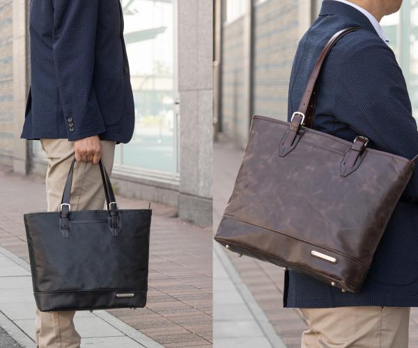 Amazonでのご購入はコチラ! 楽天市場でのご購入はコチラ! 商品紹介 YouTubeはコチラ クラウドファンディングサイト【Makuake】にて56名様、1,926,430円のご支援を頂き製品化しました!詳しくはこちらをご覧下さい! 本体素材にプルアップレザーを使用した本格トートバッグです。 市販のワックス、クリームなどを使用する事で艶や色に深みが増し、革に重厚感が増して行きます。 男女問わずお使い頂けるようコンパクトサイズに仕上げました。 シンプルなデザインで、持つ人を選びません。 オールレザーですが鞄本体の重さは800グラムと、1キロを切っています。 本体のレザーは北米原皮、姫路のタンナーで鞣された「バレッサ供廚鬟船腑ぅ垢靴泙靴拭 この革は表面を軽く擦り、150度という高温のアイロンでWAXを浸透させた事によりきめ細やかな肌面が特徴の革です。鞣しの段階でタンニンを使用する事で軽量化も実現、100度の低温アイロンで最終仕上げを行う事で自然のつやを出しています。 市販のワックス、クリームなどを使用する事で艶や色に深みが増し、革に重厚感が増して行きます。 軽いかすりキズ程度であれば、オイルを塗り込む事で目立たなくなるので是非キズを気にせず使って下さい。 お礼のお手紙に、日々のお手入れ方法を記載してお送り致します。 本体に合わせる付属の革も国内鞣しの牛ヌメ革を使用しています。 ワックスを丁寧に塗り込んで仕上げたヌメ革はツヤがあり手触りも良いので、持ち手や鞄の口元など、手に触れたり擦れる事が多い箇所に使用しています 本体素材:牛革 裏地:ポリエステル(ブラック→ネイビー、ブラウン/キャメル→ブラウン) 付属革:牛革(ブラック→ブラック、ネイビー/キャメル→ブラウン) 金属:ニッケル古美色 サイズ:横幅(上)40cm/横幅(下)33cm×高さ30.5cm×マチ幅12cm 持ち手立ち上がり:約19cm〜28cmで調節可能 本体重さ:800グラム 原産国:日本(自社工場)