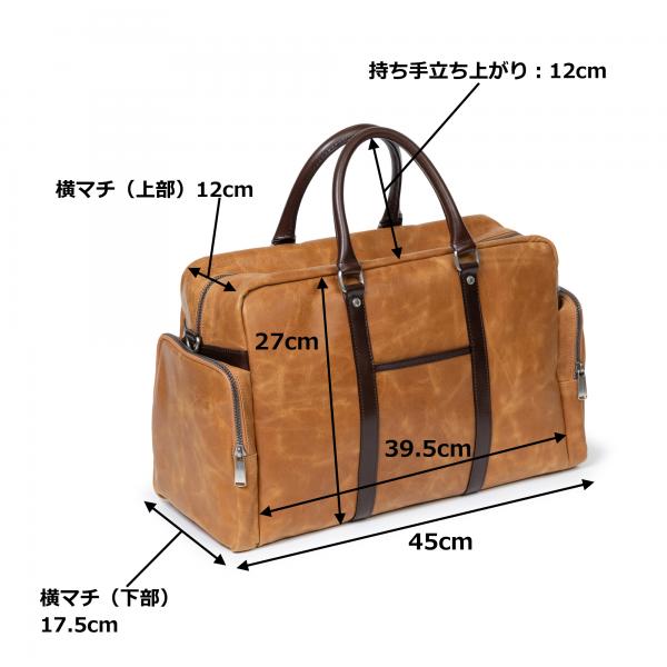 Amazonでのご購入はコチラ! 楽天市場でのご購入はコチラ! 国内生産の本革を贅沢に使用し、エイジングも楽しめる本格ボストンバッグです。 2泊3日程度の荷物は収納可能、存在感ある重厚なデザインと軽量を両立し、本体の重さは1050グラムにおさえました。 長年ビジネスバッグを作り続けてきた野崎製作所が手がけているので、耐久性と機能製を兼ね備えています。 本体のレザーは北米原皮、姫路のタンナーで鞣された「バレッサ供廚鬟船腑ぅ垢靴泙靴拭 この革は表面を軽く擦り、150度という高温のアイロンでWAXを浸透させた事によりきめ細やかな肌面が特徴の革です。鞣しの段階でタンニンを使用する事で軽量化も実現、100度の低温アイロンで最終仕上げを行う事で自然のつやを出しています。 市販のワックス、クリームなどを使用する事で艶や色に深みが増し、革に重厚感が増して行きます。 軽いかすりキズ程度であれば、オイルを塗り込む事で目立たなくなるので是非キズを気にせず使って下さい。 お礼のお手紙に、日々のお手入れ方法を記載してお送り致します。 本体に合わせる付属の革も国内鞣しの牛ヌメ革を使用しています。 ワックスを丁寧に塗り込んで仕上げたヌメ革はツヤがあり手触りも良いので、持ち手や鞄の口元など、手に触れたり擦れる事が多い箇所に使用しています。 本体素材:本牛革 裏地:ポリエステル(ブラック→ネイビー、ブラウン/キャメル→ブラウン) 付属革:牛本革(ブラック→ブラック、ネイビー/キャメル→ブラウン) 金属:ニッケル古美色 サイズ:横幅39.5cm×高さ27cm×マチ幅(上)12cm×マチ幅(下)17.5cm ショルダーストラップ:約82cm〜138cmで調節可能 本体重さ:1050グラム(付属ショルダーストラップ200グラム) 原産国:日本(自社工場)