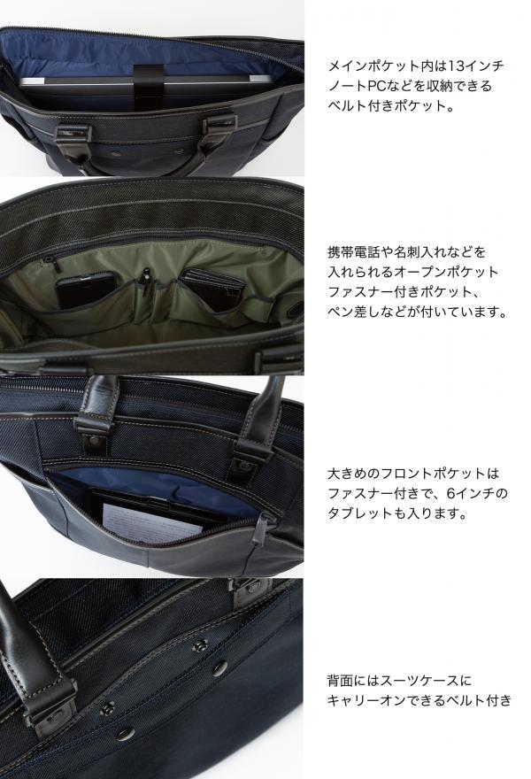 Amazonでご購入の場合はコチラ! 楽天市場でご購入の場合はコチラ! メイン素材に味のある表情を表現した混紡、附属に牛革を使用した、A4サイズが楽に入りタウンユースはもとよりビジネスシーンにも使用可能な機能性・耐久性に優れたスタイリッシュなトートバッグです。 メイン素材: ナイロン93% ポリエステル7% 附属:牛革 裏地:ナイロン(テフロン加工を施し撥水性に優れたナイロン) ブラック・ネイビーには、ネイビー色 ダークグリーンには、カーキ色 重量:950g 原産国:日本 サイズ:横幅36cmX高さ30cmXマチ幅11cm YouTubeにて動画で商品を紹介しています! コチラからご覧下さい!! 取扱店舗 ジャックラビッツ(神奈川県藤沢市) ボンボヤージュ(熊本県熊本市) ノエルヤマモト (塚口店、ピエリ守山店)