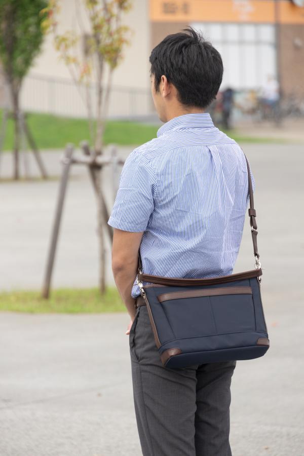 メイン素材: ナイロン(リモンタ社製) 附属:牛革 本体に高密度で光沢感のある上質な素材として有名なリモンタ社製ナイロン、附属には手塗ワックス後にアイロン加工を施した牛ヌメ革を使用した、B5サイズが入りポケットを多数装備した収納力のある、ワンショルダー・斜め掛けと2WAYで使用できるショルダーバッグです サイズ 横幅30cmX高さ21cmX厚幅(マチ)9cm 日本製 重量:600g