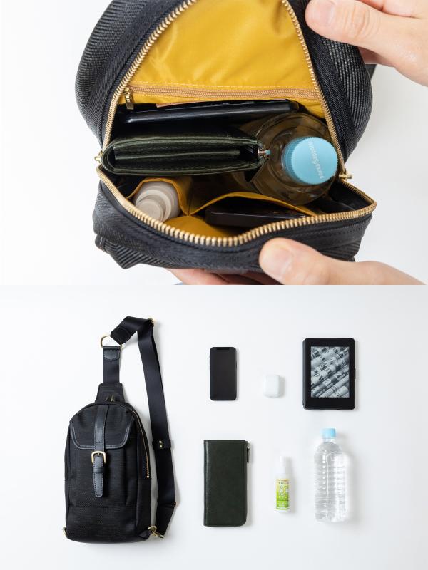 Amazonでご購入の場合はコチラ! 楽天市場でご購入の場合はコチラ! たっぷりサイズの縦型ボディバッグです。 本体素材に2種類の素材の混紡により上品な光沢のあるナイロンを使用したシリーズです。 裏地には撥水性に優れたテフロン加工を施したナイロン生地を使用しています。 前面の美錠金具ポケットはマグネットが付いているので簡単に開閉できます。 背面はメッシュ生地で通気性があります。 本体素材:ナイロン93%、ポリエステル7% 裏地:ナイロン/イエロー(テフロン加工を施し撥水性に優れたナイロン) 付属革:牛革(全二色) 金属:真鍮色 サイズ:横幅18cm×高さ32cm×厚幅(マチ)7cm ショルダーの長さ:60cm〜100cmで調節可能 重さ:400グラム 原産国:日本 YouTubeにて動画で商品を紹介しています! コチラからご覧下さい!! 取扱店舗 ノエルヤマモト (高砂店、塚口店、長浜店、舞鶴店、伊勢店、大和高田店、神戸北町店、大津店、高砂店)