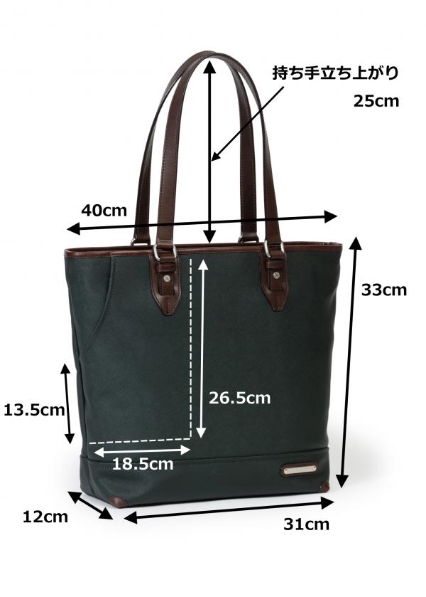 Amazonでご購入の場合はコチラ! 楽天市場でご購入の場合はコチラ! クラウドファンディングサイト【Makuake】にてご支援を頂き製品化しました!詳しくはこちらをご覧下さい! 鞄を選ぶ際、重さは重要な項目です。 荷物を入れて重さが増すのに、鞄本体が重たい...こんな鞄を使っている方も多いのではないでしょうか。 長年、鞄作りに携わってきた野崎製作所だからこそ、軽量にこだわりたい。 見えない工夫をたくさん施し、軽さをとことん追求した鞄を考案しました! トートバッグは縦長のシルエットになっています。その理由はひざの上に収まるサイズに設計したからです。 トートバッグの横幅は40cm、これは女性の膝の上に収まるサイズです。 以前、弊社の鞄をご愛用頂いている女性のお客様より、「使っているトートバッグの横幅が大きくて電車の座席に座ると邪魔になる」というご意見が有り、トートバッグの横幅を縮めるお直しをした事がありました。 その経験を参考に、女性でも持ち運びやすいサイズ、かつひざの上に収まるサイズにと調整を進め、このサイズになりました。 トートバッグを地面に置く方もいらっしゃるかとは思いますが、今のご時世を考えると出来れば避けたい所です。 このトートバッグであれば地面に置くことも無くスマートに乗車が可能です。 本体にはPUコーティングを施した8号帆布生地を使用しています。 コーティングの柄は海外ブランドでも人気のサフィアーノ調を採用しました。 サフィアーノ調とは細かな格子状のシボ模様で、まるで本革のような見た目を演出しています。 PUコーティングには撥水性もあり、少しの水や汚れは簡単に弾きます。 急な雨でも、サッと拭き取るだけでOK!本革と違って表面に水シミができる事もありません。 付属には牛ヌメ革を使用しております。 本体ブラックには黒の牛革、 本体ネイビー、グリーンには茶の牛革を使用しております。 持ち手や口元、底の角など摩擦や動きが多い箇所には本革を使っているので、丈夫で長くご愛用頂けます。 ヌメ革ですので、使えば使うほど馴染み、経年変化をお楽しみ頂けます。 本体素材:合成皮革(PUコーティング) 裏地:ナイロン/カーキ色 付属革:牛本革(ブラック→ブラック、ネイビー/グリーン→ブラウン) 金属:ニッケル古美色 サイズ:横幅(上)40cm/横幅(下)31cm×高さ33cm×マチ幅12cm 持ち手立ち上がり:25cm 本体重さ:700グラム 原産国:日本 どのくらいの荷物が入るのか?サイズ感など、動画でご紹介しています。 YouTubeチャンネル是非ご覧下さい!