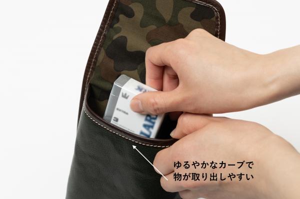 Amazonでご購入の場合はコチラ! 楽天市場でご購入の場合はコチラ! クラウドファンディングサイト 【GREENFUNDING】 【Kibidango】 【BOOSTER】 にて合計161名様、1,832,200円のご支援を頂き商品化しました! お散歩バッグの新提案!肩掛けとウエストの2WAYで使用出来るコンパクトバッグです。 姫路で鞣されたソフト牛ヌメ革を使用、自然に出来たシュリンク(シボ)が特徴で、経年変化もお楽しみ頂けます。 本当に必要な物が入るジャストサイズ!文庫本や電子書籍端末がぴったり入ります。 本体素材:牛ヌメ革(全7色) 裏地:コットン(迷彩柄) 付属革:牛ヌメ革(全2色) 金属:真鍮色 サイズ:横12.5cm×高さ19.5cm×マチ幅3.5cm 本体重さ:300グラム 原産国:日本(自社工場) どのくらいの荷物が入るのか?サイズ感など、動画でご紹介しています。 Youtubeにて動画公開中です!