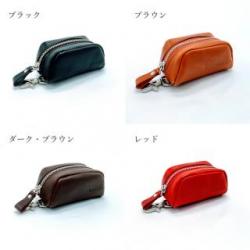 ポーチ型のキーケースは、ナスカンが付いているので腰にぶら下げる事が出来ます。鍵はファスナー付きレザーケースに収める仕様なのでジャラジャラと鳴る音も抑えます。 中にダブルリングも付いているので、お手持ちの鍵に通してお使い頂けます。 車の電子キー、スマートキーにも対応したサイズです。 キーケースですがAirPortsやリップクリームなど無くしやすい物を入れる小物入れとしても重宝します。 ※(※)鍵の大きさにより収納不可能なものもございます。ご購入前にサイズをお確かめください。